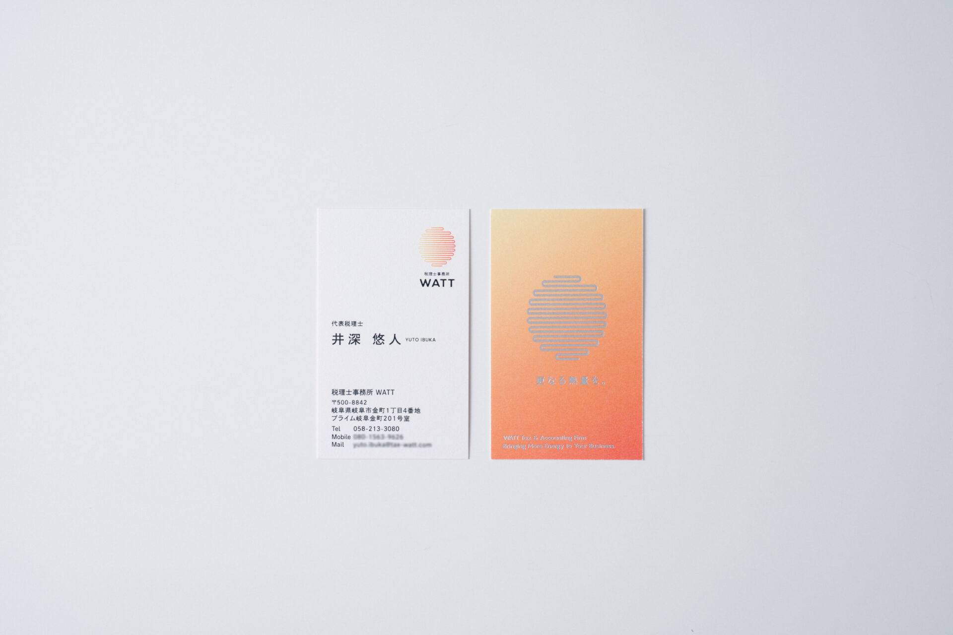 岐阜市に開業した税理士事務所WATTのブランディングデザインを担当しました。 今回のテーマは『日本一で一番クライアントを幸せにする税理士事務所』という事で、『更なる熱量を』というタグラインを軸にコンセプトを組み立てました。 コンセプトワークから、ネーミング開発、VI計画、内装設計まで一貫してデザインワークを担当しました。