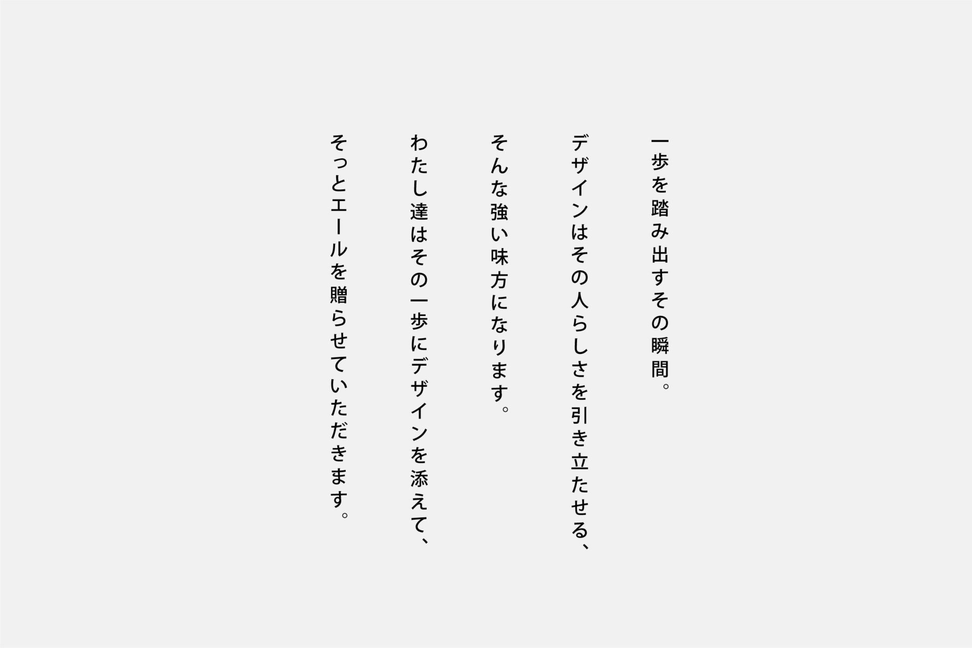 岐阜市に拠点を構える合同会社soeru designのブランドステートメントの制作を行いました。 オーナーの想いにあった「初めの一歩に添えるデザインを。」を起点に言葉のデザインをさせて頂きました。